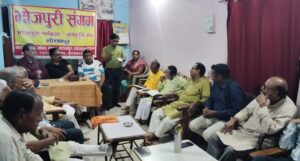 पुरनयिा कवि आचार्य मुकेश श्रीवास्तव के अध्यक्षता में आयोजित एह बईठकी के संचालन अवधेश शर्मा ‘नंद’ सम्हरलन।